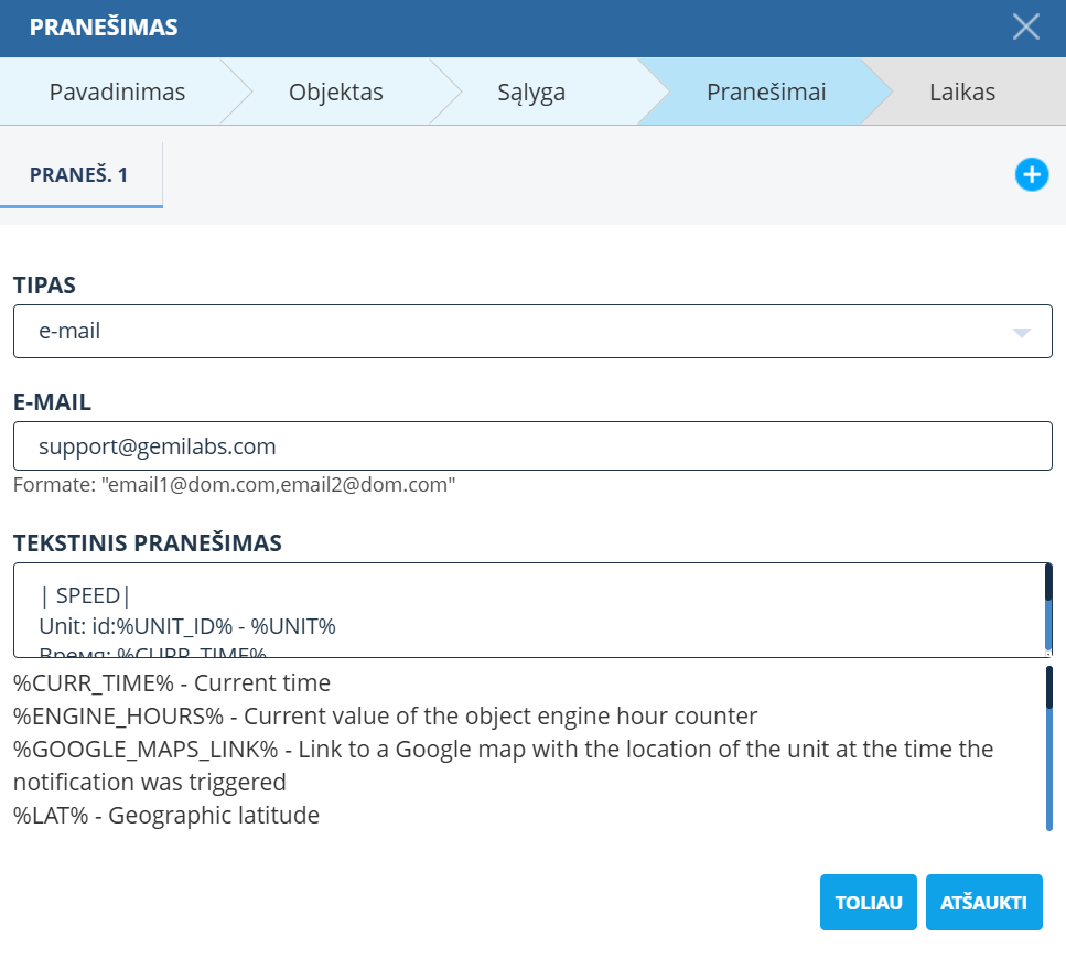 Данный тип оповещения предназначен для отправки уведомления на указанный email.