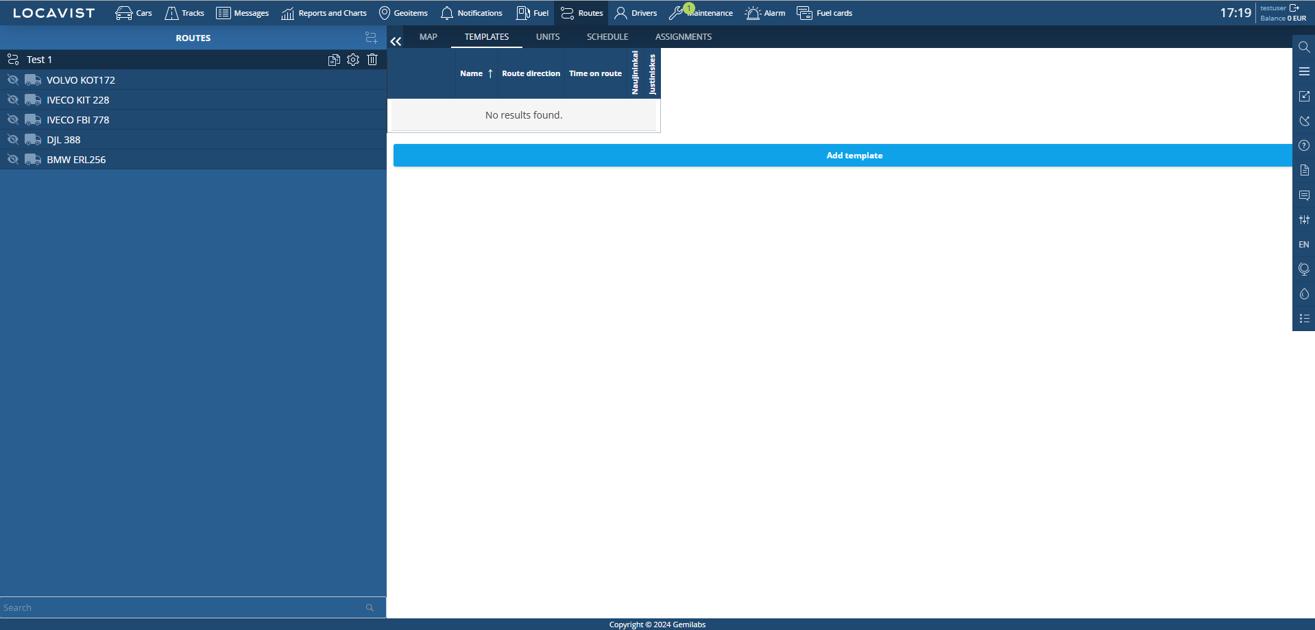 Модуль Маршруты предназначен для мониторинга пассажирского транспорта. Модуль условно разделен на рабочую область, предназначенную для работы с маршрутами, и информационную панель, предназначенную для онлайн мониторинга и управления маршрутом.