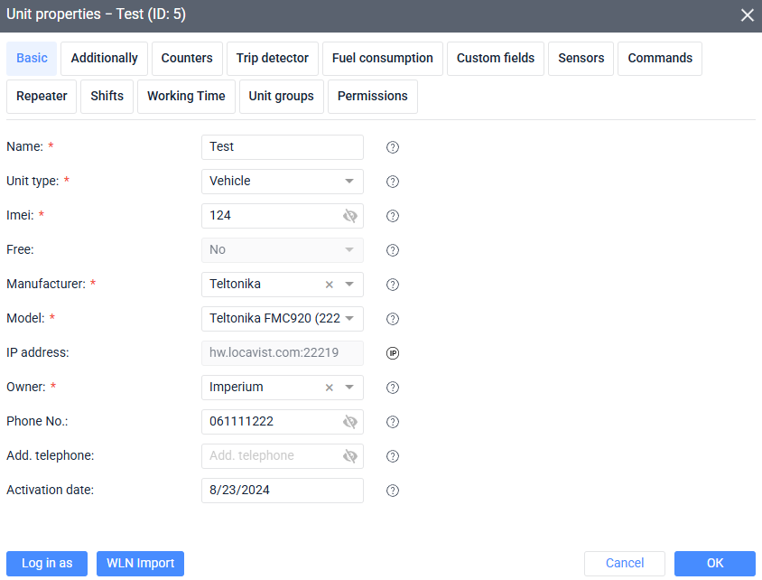 | Идентификатор | Уникальный персональный номер объекта. Как правило, идентификатором является IMEI устройства, серийный номер и т.п. Не разрешается создание объектов с одинаковыми идентификаторами и типом оборудования |