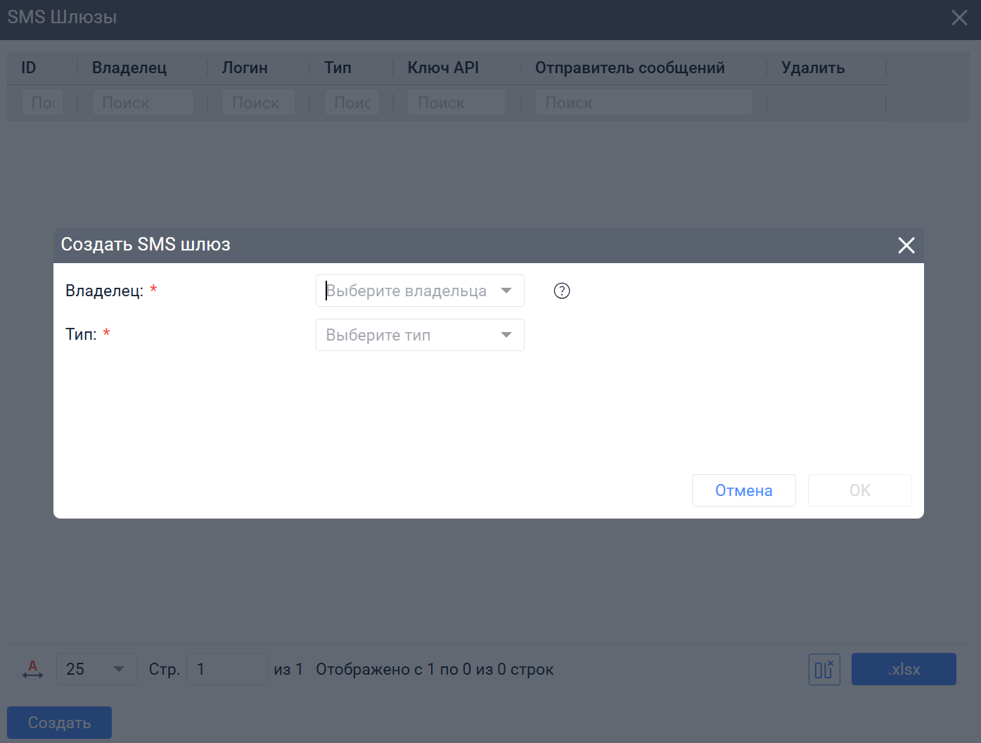 - Владелец - логин пользователя, которому принадлежит СМС шлюз;